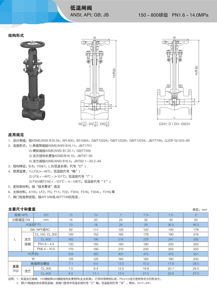 商務合作:15867725552@163.com『DZ41Y鍛鋼低溫法蘭閘閥』供應商,本司供應的【低溫閘閥】質量先行、價格合理、售后服務較完善?!篋Z41Y鍛鋼低溫法蘭閘閥』適用于輕重工業(yè)及樓宇管道。流體前進的道路上,讓滄海閥門為您排憂解難!【閘閥】可應用于:化工、石化、石油、造紙、采礦、電力、液化氣、食品、制藥、給排水、市政、機械設備配套、電子工業(yè),城建等領域。 產(chǎn)品名稱DZ41Y鍛鋼低溫法蘭閘閥產(chǎn)品型號DZ11Y、DZ61Y、DZ